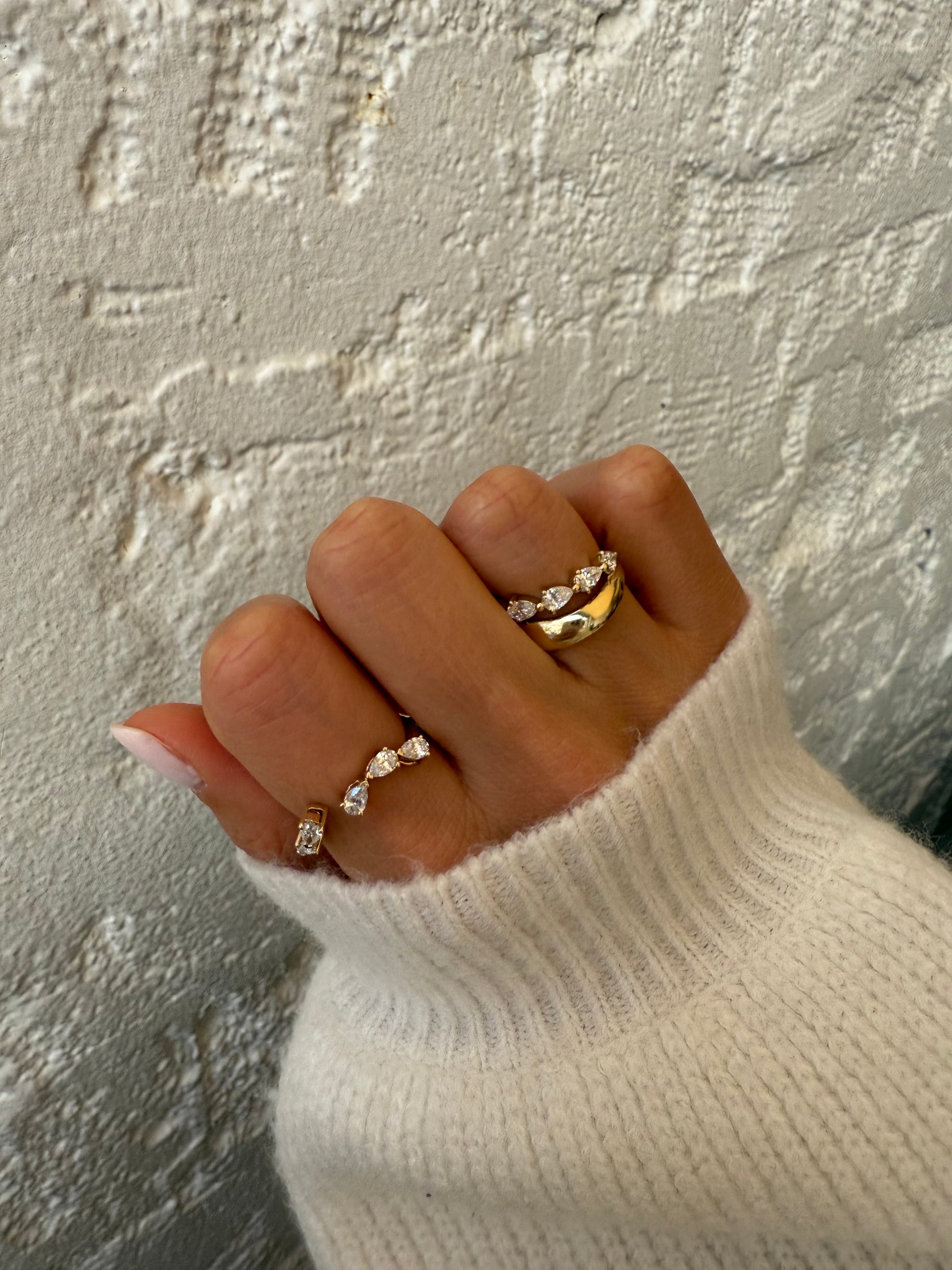 Five pear-cut lab-grown diamonds, east-west set in open baskets, curve elegantly around the finger. Crafted in 9k or 18k yellow gold, the RUBI wrap is designed with a natural contour to perfectly sit flush with the RUBI marquise or stand alone with understated edge.