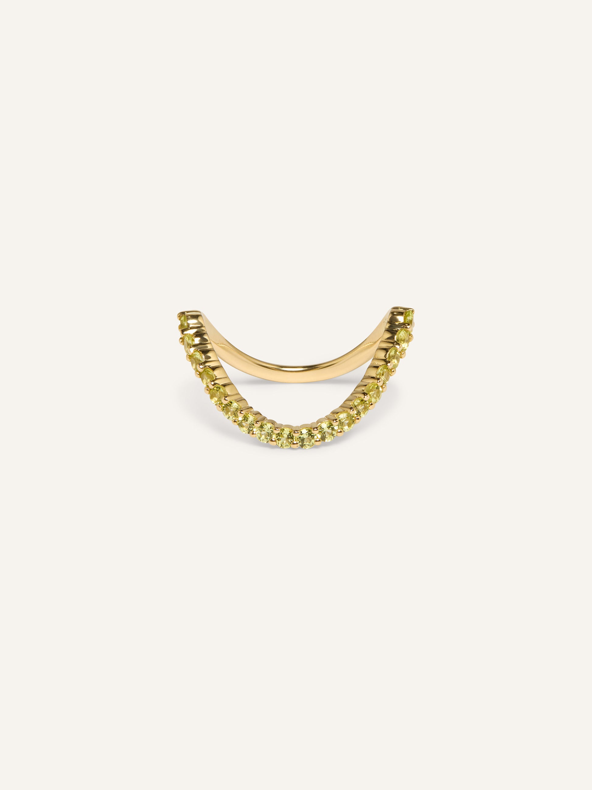 A contoured gold band of understated peridot gemstones, designed as a daintier piece to complete the SIA stack or stand alone with minimalist appeal. Crafted in solid 9k or 18k yellow gold for effortless layering and refined wear.